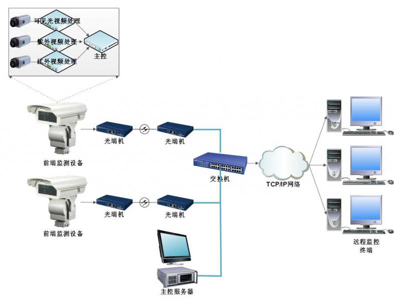 系統(tǒng)可實(shí)現(xiàn)對(duì)紫外、紅外和可見光圖像的遠(yuǎn)程傳輸和監(jiān)控, 超溫、電暈超標(biāo)報(bào)警提示。通過(guò)遠(yuǎn)程對(duì)攝像機(jī)控制,預(yù)制定位,遠(yuǎn)程切換,自動(dòng)巡視等。能夠支持多場(chǎng)所的中央監(jiān)控,不受地理限制,多個(gè)用戶可同時(shí)監(jiān)控同一前端,發(fā)生異常自動(dòng)抓拍,同時(shí)自動(dòng)啟動(dòng)錄像機(jī),具有很好的兼容性及可擴(kuò)展性。提高運(yùn)行人員對(duì)設(shè)備缺陷的識(shí)別能力和預(yù)見性。